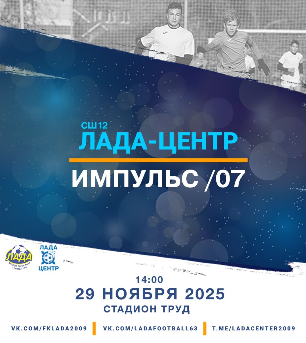Долгожданный футбол!! Играем с командой #Импульс2007!!! Приходите посмотреть классный матч или смотрите трансляцию в нашей группе!!! 🏆#ЮношескийФутбол | Товарищеский матч 📌 29 НОЯБРЯ 2025 (СУББОТА) ⛳️ ТОЛЬЯТТИ, СТАДИОН ТРУД 🔔 Начало в 14-00 (TLT) "ЛАДА-ЦЕНТР" 🖤 vs. 💛 "ИМПУЛЬС 2007" 📻 НОВОСТИ ЛАДА-ЦЕНТР https://dzen.ru/id/6237a612365c026c307e2f95 t.me/ladacentr2010 #ЛадаЦентр2009 #Тольятти #ФутболТольятти #СШОР12 #ДетскийФутболТольятти #стадионТруд #БолеемЗаНаших #Труд #СШОР12Лада #ФутболВСердце #Импульс