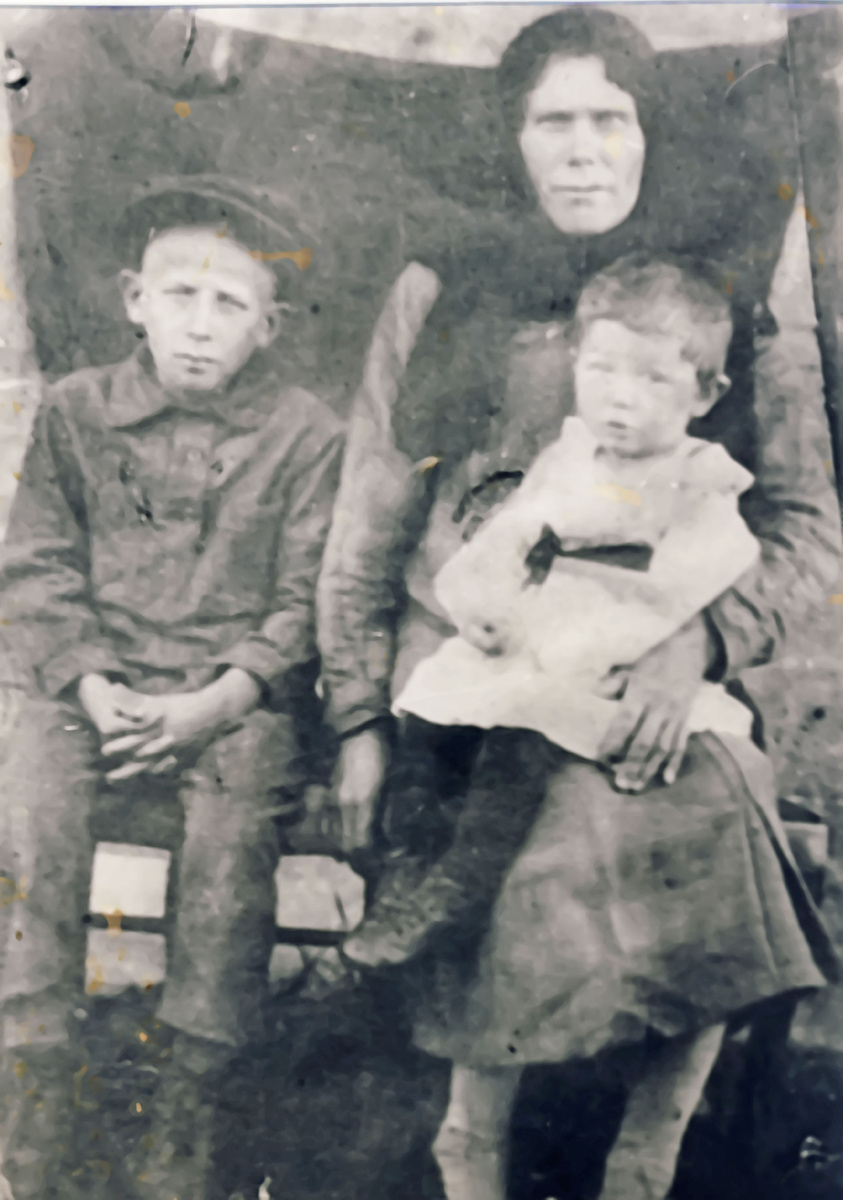 Богом забытая деревня Акинфиево Нижнетагильского района, 1935 год, моя бабушка, дядя Федя и тётя Зина (дай ей Бог здоровья). Все в кожаной обуви, а у тёти Зины даже детские пинеточки! А ведь через год ножка вырастет, и останется тётя Зина без пинеточек. Хотя, скорее всего, обувь одолжили для снимка. А может, это реквизит фотографа. Проклятая советская власть, чур меня, чур!