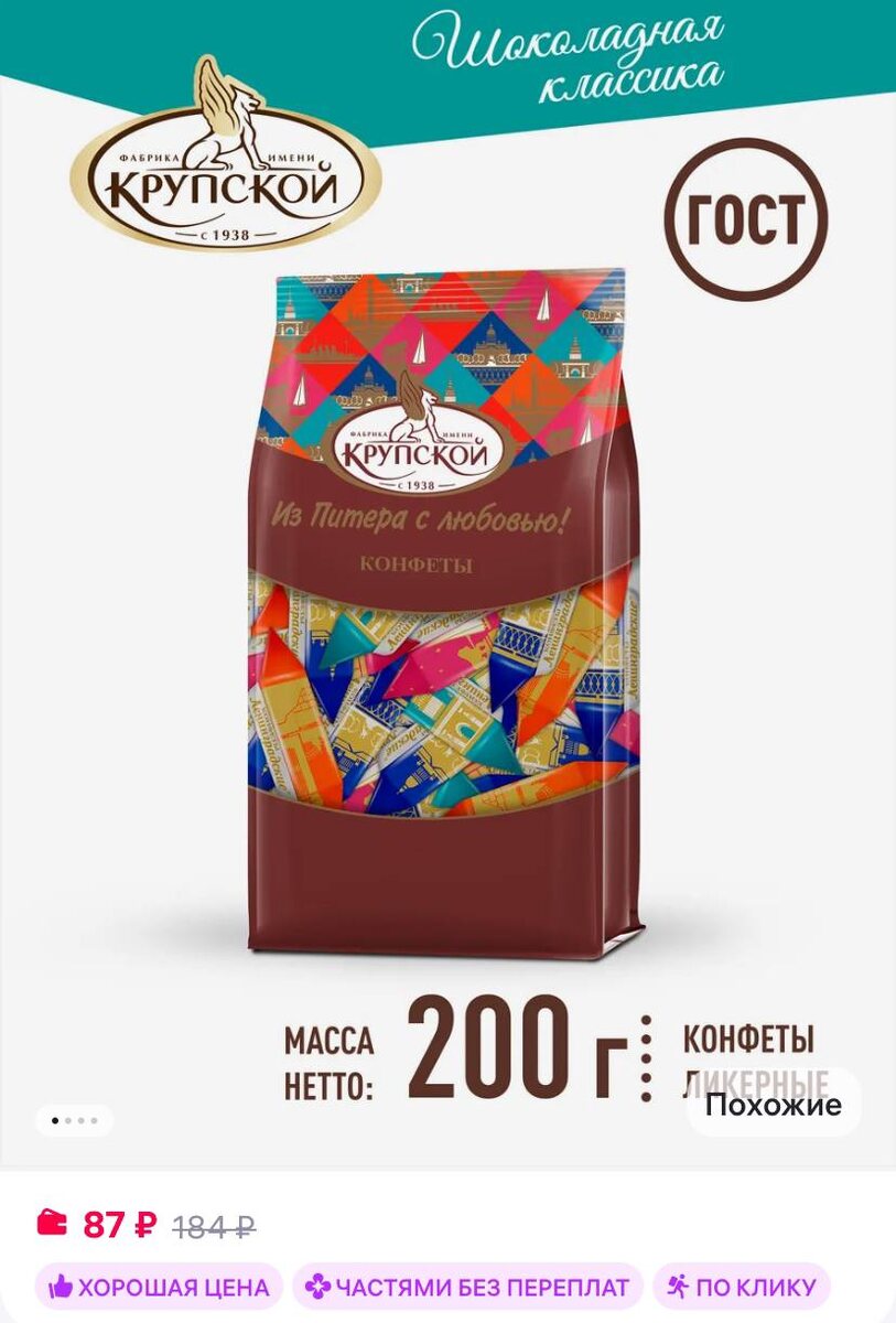 Кондитерская фабрика им. Н. К. Крупской Конфеты" Ленинградские", 200 г https://www.wildberries.ru/catalog/146181800/detail.aspx?size=246104907 ✅ Подписаться 🔣 Бот с промокодами