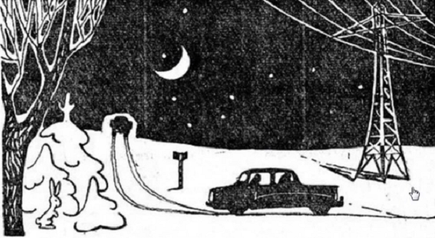 На ней изображен лунная ночь и зимняя дорога, по которой едет легковой автомобиль и удаляется грузовой. Художник намеренно сделал на ней семь разных ошибок. Попробуйте их отыскать.
