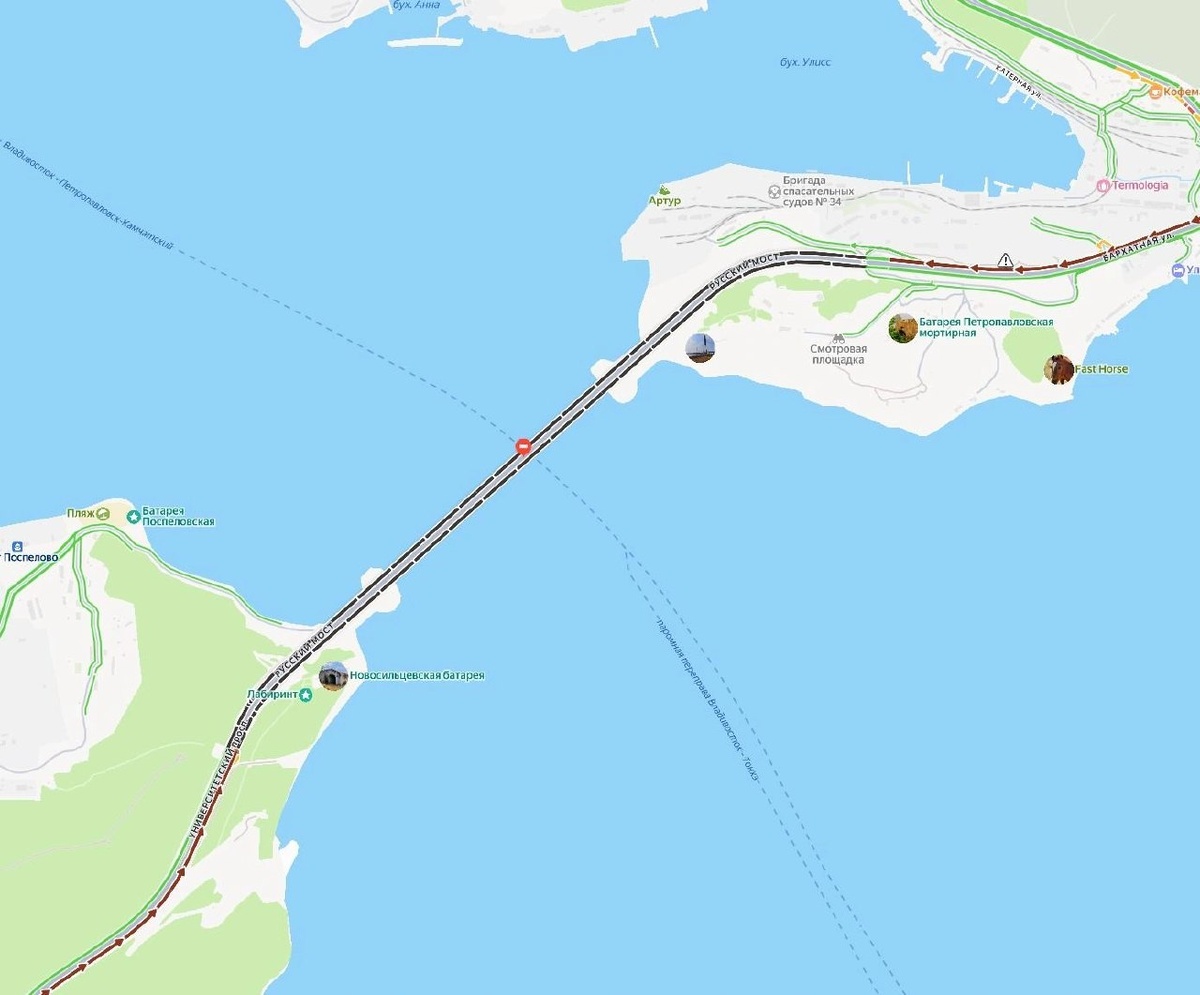 Во Владивостоке полностью перекрыли проезд по Русскому мосту, в результате чего с обеих сторон сооружения собрались огромные пробки. Автомобилисты стоят в заторах более часа и массово жалуются на ситуацию в агрегаторах. Мост перекрыли примерно в 14:45. В Единой дежурной диспетчерской службе корреспонденту @vladivostok1 сообщили, что ограничение связано с образовавшейся на вантах (крепежных тросах) наледи. Она начала таять с приходом тепла, из-за чего появился риск падения на автомобили. «На мосту образовалась наледь, пошло потепление, и движение по мосту стало опасным. Могут пострадать люди, поэтому пока перекрыли», — уточнили в ЕДДС. Также некоторые пользователи предположили, что часть автомобилистов могла застрять на самом мосту, но в ЕДДС сообщили, что машин на сооружении нет. Сейчас по нему пропускают только спецтранспорт. Когда проезд откроют — неизвестно. Со стороны острова огромная пробка тянется от МиниТЭЦ «Центральная», а со стороны города — от улицы Коммунаров. Фото: yan