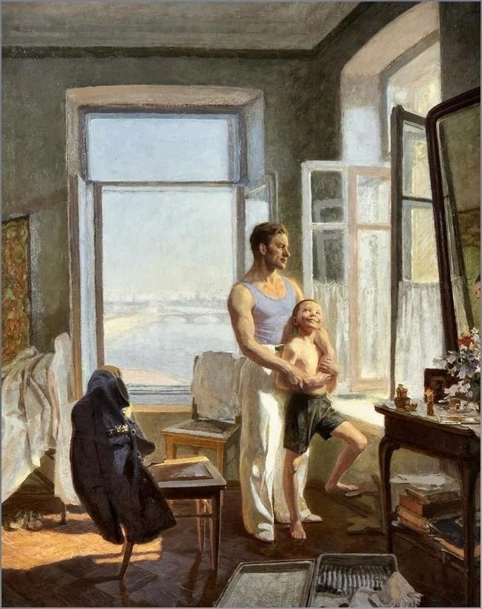 Лидия Фёдоровна Фролова - Багреева (1907, Санкт-Петербург - 1997, Санкт-Петербург), советская художница, живописец, график и прикладник, член Санкт-Петербургского Союза художников (до 1992 года — Ленинградской организации Союза художников РСФСР). "Возвращение" / "Светлое утро", 1948 Холст / масло, 110,5 х 91,5 Государственный Русский музей, Санкт - Петербург