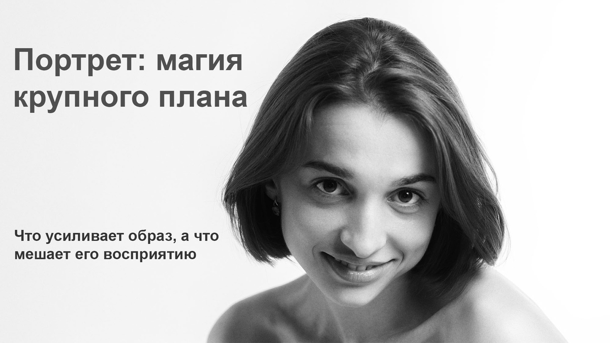 Цель: понять влияние одного софтбокса и отражателя. Метод: зафиксируйте положение камеры; меняйте угол софтбокса и отражателя; делайте по 3 кадра на конфигурацию. Критерии: видимая разница в пластике лица, изменения в тоне и в текстуре. - «Тесный кадр»