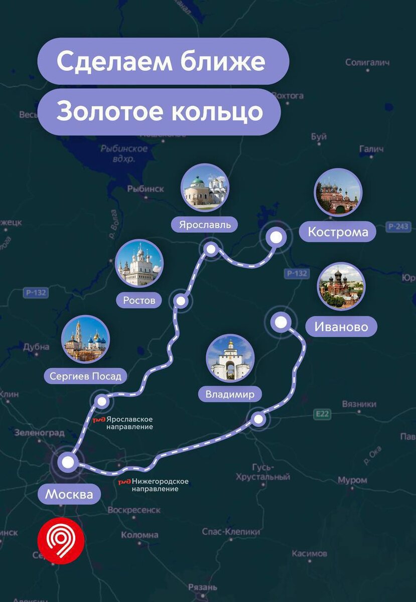 «Наземное метро» — это, по сути, скоростная пригородно-городская железнодорожная система (S-Bahn, RER). Такой проект мог бы кардинально изменить туристическую инфраструктуру Золотого кольца, сделав его доступнее и комфортнее. Детальный план-концепция такого проекта. Основная идея - создание кольцевого маршрута на базе существующих и новых железнодорожных путей с частым движением комфортабельных электропоездов, интегрированных с городским транспортом ключевых городов. Проект делится на два ключевых кольца: Малое (для коротких поездок и туров на 1-2 дня) и Большое (классическое Золотое кольцо). А. Малое Золотое Кольцо (Основное кольцо). Маршрут: Сергиев Посад — Переславль-Залесский — Ростов Великий — Ярославль — Кострома — Иваново — Суздаль — Владимир — Боголюбово — Александров — Сергиев Посад. Инфраструктура: Реконструкция: Модернизация участков Сергиев Посад — Ярославль и Иваново — Владимир. Новое строительство: Ключевой вызов — строительство высокоскоростной линии «Суздаль — Иваново»,
