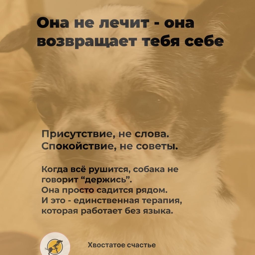 Просто кто-то садится рядом - и внутри становится тише. Собака не лечит. Она возвращает. К себе. К простоте. К доверию. А ты - когда в последний раз просто был рядом, не спасая и не требуя? 👇 В Telegram говорим об этом глубже: https://t.me/+bvyJZhDrv9IwNDVi