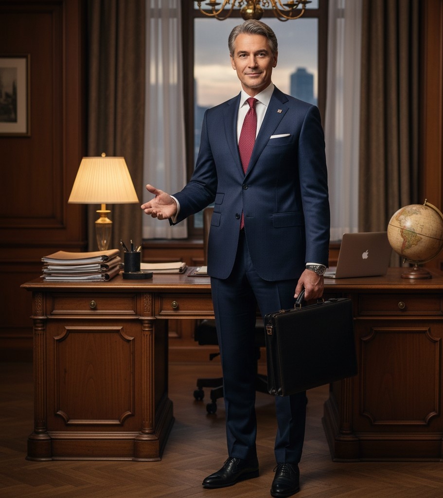 Что надеть: Костюм: Темно-синий (Navy) или темно-серый (Charcoal). Черный — только для смокингов на вечерних приемах (Black Tie). Ткань — дорогая матовая шерсть. Если костюм блестит — это катастрофа.