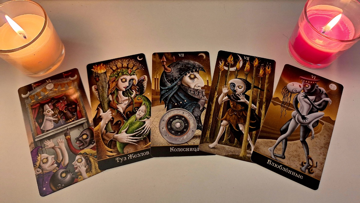 Я выложил карты на предстоящие семь дней, и, честно говоря, от стола повеяло удивительной, очень живой энергией. Это не неделя застоя или серой скуки. Это неделя-вихрь, неделя-пробуждение, когда душа сначала окунется в теплую ванну воспоминаний, а потом вспыхнет, как феникс. Перед нами легли: Шестёрка Кубков, Туз Жезлов, Колесница, Семёрка Жезлов и Влюблённые.