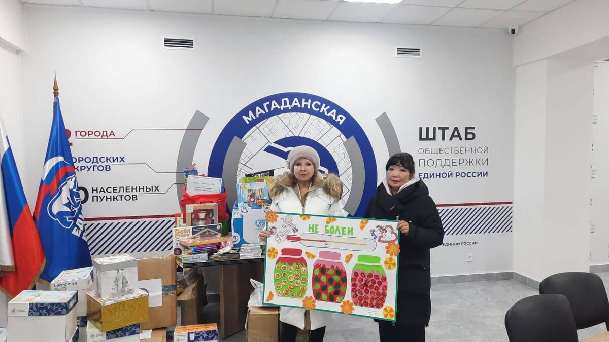 «Педагоги и сотрудники 22 детских садов Магадана привезли игрушки, книги и творческие наборы в штаб общественной поддержки партии. Отсюда они будут переданы детям, находящимся на длительном лечении, чтобы поддержать маленьких пациентов и подарить им немного тепла и радости», - сообщила председатель регионального отделения ВОО «Матери России» Ирина Рязанцева. Она отметила, что «это очень тёплая и важная миссия — поддержать детей, которые находятся в больнице. Мы видим, с каким вниманием и душой педагоги, родители и сами ребята собирали «Коробку храбрости». Для нас важно не просто передать полезные вещи, но и подарить детям чувство заботы и уверенности, что о них помнят и думают». Представители Центра поддержки семей мобилизованных доставили в детское отделение областного центра охраны материнства и детства настольные игры, игрушки, альбомы, карандаши, пластилин, мячи и новогодние гирлянды, чтобы создать тёплую атмосферу и помочь детям легче переживать время, проведённое в больнице.