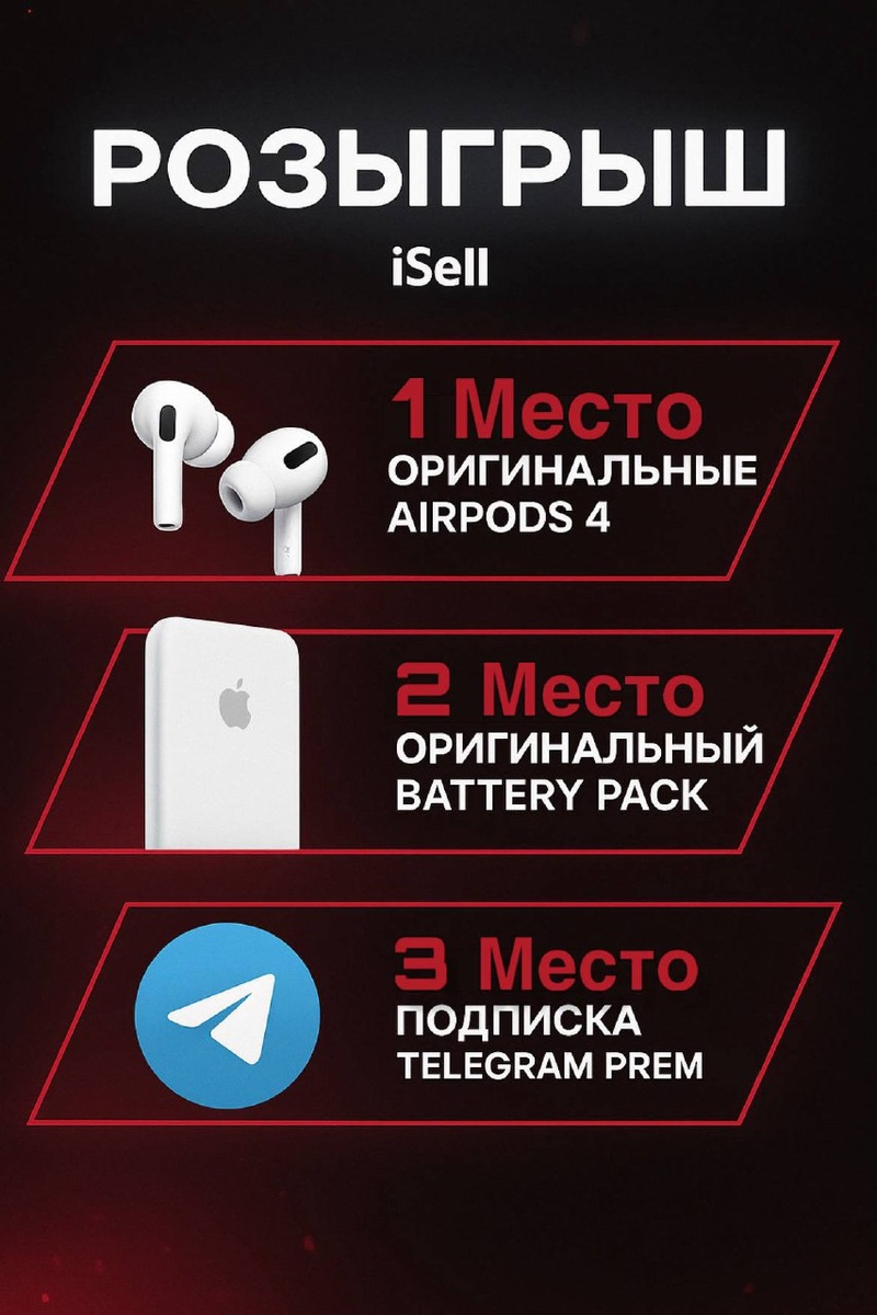 Остался последний день что бы принять участие!😱 Участвовать тут 👈 🎉Лучший магазин техники Apple в Казани — iSell — запускает мега розыгрыш! Призы для самых удачливых: 🥇1 место — Оригинальные AirPods 4 🥈2 место — Оригинальный Battery Pack 🥉3 место — Подписка Telegram Premium ☝️Как принять участие? — Подпишись на @isell — Нажми кнопку «Участвовать» И жди результаты 30.11.2025 😎