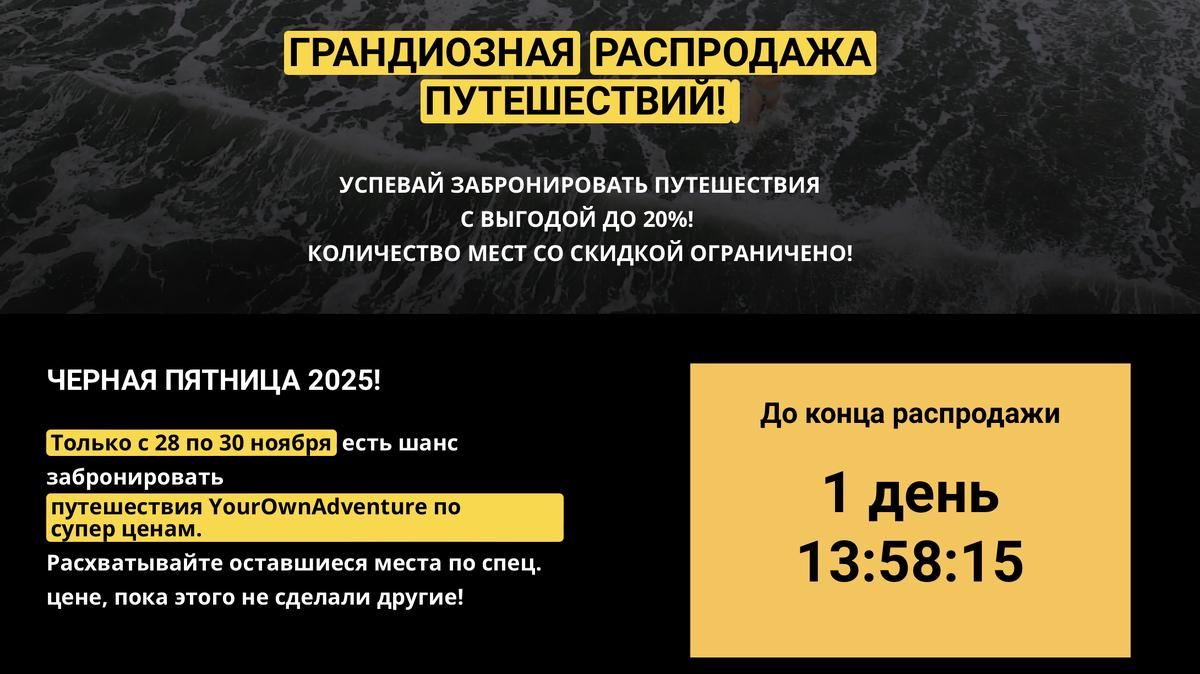 Чёрная пятница в Клубе путешественников YourOwnAdventure: идет приём заявок!