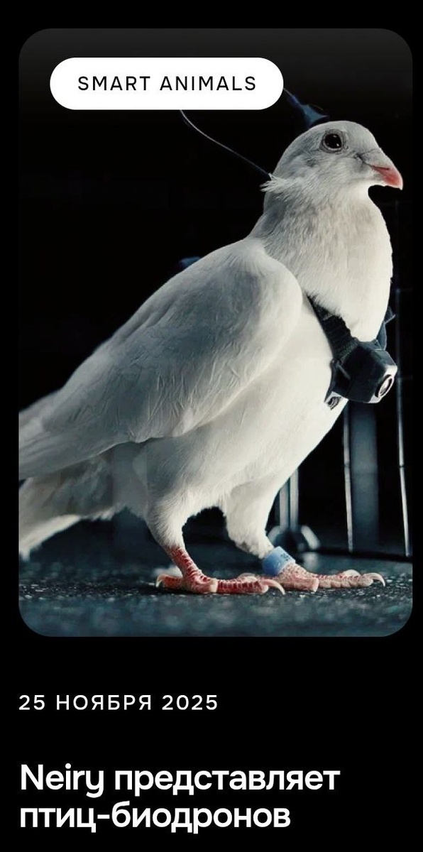 Самолеты больше не нужны..... нужны голуби. Встречаем российского производителя голубей-биодронов. "Голубь-биодрон PJN-1 отличается от обычной птицы только проводом нейроинтерфейса, выступающему из головы, а также рюкзачком с электроникой. Его основная задача — обеспечение мониторинга практически любого типа, например, экологического и промышленного, проведение поисково-спасательных операций, обеспечение дополнительного контура безопасности". Ростеху и ЦАГИ - на заметку... @zhuk_city