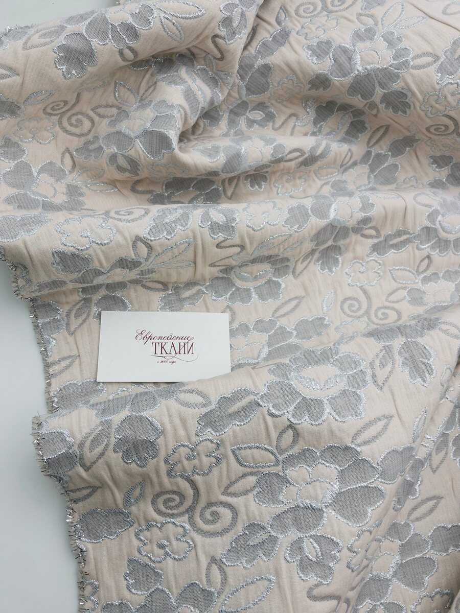 ✨new✨Роскошный жаккард с серым цветочным узором и люресом на пудровом оттенках, двухсторонний, Италия🇮🇹 ✔️СОСТАВ: 29% хлопок, 12% люрекс, 43%ацетат, 16% па ✔️ШИРИНА:140см ✔️ЦЕНА: 6210₽/м ✔️АРТИКУЛ: VI1810024 Заказать ткань/задать вопрос/запросить фото и видео можно здесь @evro_tkani54 🔗 или по WA 89139431661☎️