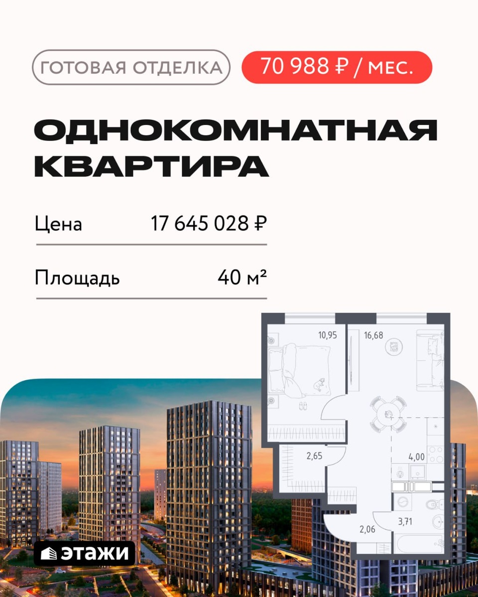 ▶️Субсидированная ставка 9% на 3 года О проекте: ⭕️Ключи — до 31.12.2025. ⭕️Расположение: Новая Москва, поселение Мосрентген, ул. Адмирала Корнилова. ⭕️До м. Саларьево — 15 мин пешком. ⭕️Готовая отделка. ⭕️4 корпуса переменной этажности. ⭕️Технология строительства: кирпично‑монолитная. ⭕️Концепция территории: «двор без машин». ⭕️Инфраструктура на территории: пешеходные аллеи, спортплощадки, игровые площадки, школа, детский сад, коммерческие помещения на первых этажах. ⭕️В пешей доступности: магазины, спорткомплекс, школа, детский сад, банк, поликлиника. ⭕️В 15 мин транспортом: Тропаревский лесопарк и 3 крупных ТРЦ. Условия покупки: ⭕️ПВ от 50% ⭕️Ставка 9% на 3 года, далее 21,59% ⭕️Банк АЛЬФА ⭕️Без удорожания Расчет: ⭕️Готовая отделка, ключи до 31.12.2025 г. ⭕️Стоимость: 17 645 028 ₽ ⭕️ПВ: 8 822 514 ₽ ⭕️Ежемесячный платеж на 3 года: 70 988 ₽ #НАО #Квартал_Румянцево #Самолёт
