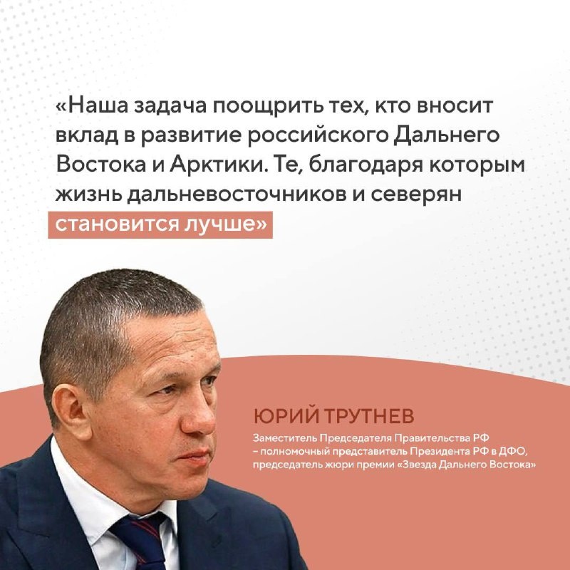 Дальневосточники и компании, чьи проекты делают жизнь комфортнее, не должны оставаться без внимания. Чтобы отмечать их вклад, с 2017 года вручается премия «Звезда Дальнего Востока». «Это не только инвестиционные проекты, но и общественные инициативы. Отдельное внимание мы уделяем поддержке проведения СВО – компаниям, студентам, волонтерам, которые вносят свой вклад в нашу общую Победу», – сказал полпред ДФО, председатель жюри премии «Звезда Дальнего Востока» Юрий Трутнев. В этом году на восьмую премию претендуют 150 проектов, выдвинутых Минвостокразвития, Корпорацией развития Дальнего Востока и Арктики, регионами и общественными организациями. Лауреатами премии за 8 лет стали более 130 предпринимателей, организаций, журналистов общественных деятелей, которые внесли значительный вклад в развитие Дальнего Востока. Online Якутия | Ждем вас в МАХ