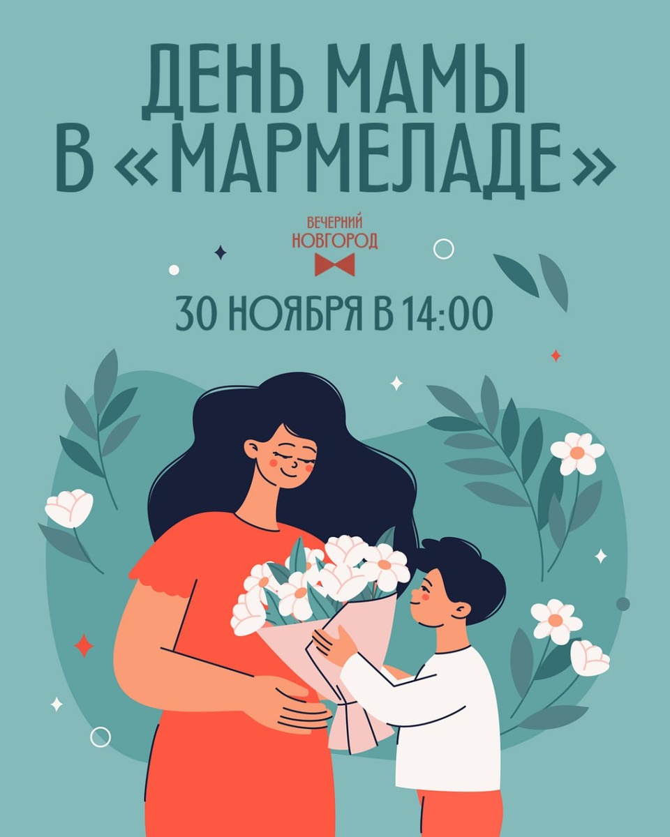 👩👦День Матери в «Мармеладе» — праздник любви и вдохновения «Мармелад» приглашает новгородцев 30 ноября в 14:00 на теплый и уютный праздник, посвященный самому главному человеку в нашей жизни — маме 💐 ✨ 14:00-16:00 — концерт творческих коллективов города — Студия танца «ПаруПа» — Хореографический коллектив «Санрайз» — Студия «КруАСаны» — Танцевальный балет «Феймос» и Малика Павлова — Солисты студии вокала «Микст»: Анастасия Козенко, Софья Семёнова, София Иванова, Илья Данилов, Дмитрий Павлов — Солистки: Ева Богдан и Анна Гейслер ✨ 14:00-17:00 — бесплатный макияж для мам от Mary Kay 🔽 30 ноября, 14:00 🔽 ТРЦ «Мармелад», 1 этаж, Ломоносова, 29 🔽 Больше информации здесь