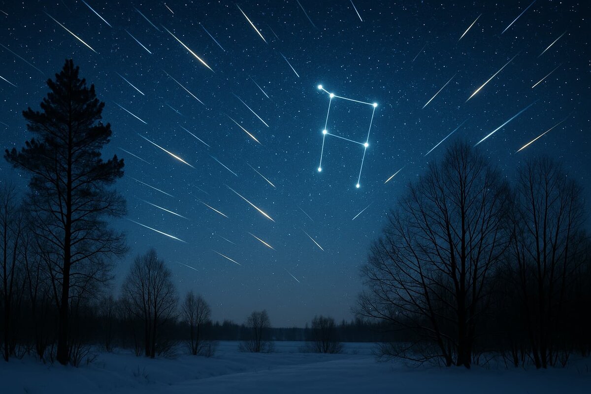 В ночь на 14 декабря 2025 года произойдёт пик метеорного потока Геминиды — самого мощного звездопада года. По прогнозам Московского планетария, в эту ночь можно будет увидеть до 120 «падающих звезд» в час. Радиан потока будет находиться в созвездии Близнецов. Геминиды формируются из обломков объекта 3200 Фаэтон, открытого в 1983 году. Этот объект промежуточный между астероидом и кометой. Звездопад известен высокой интенсивностью, которая в декабре превышает другие ежегодные метеорные потоки, включая популярные августовские Персеиды. Еще один заметный поток — Урсиды — достигнет пика активности в ночь на 22 декабря. Его радиант располагается в созвездии Малой Медведицы, а интенсивность значительно скромнее — около 10 метеоров в час. Урсиды видны только в Северном полушарии, тогда как Геминиды наблюдаются в обеих полушариях Земли. Специалисты планетария отмечают, что декабрь — месяц длинных ночей, но погода часто пасмурная, поэтому удачная наблюдательная сессия требует ясного неба. Для ма