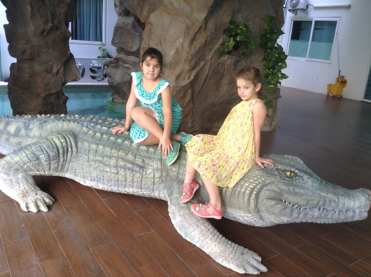 Знакомые рекомендовали нам посетить аквапарк «Рамаяна», что мы и сделали с превеликим удовольствием. После того, как мы с внучками «протестировали» горки и поплавали по реке, всей семьёй перешли в «детскую» зону. Там мы с супругом спокойно отдыхали в тени, пока девчонки с энтузиазмом осваивали новое место.