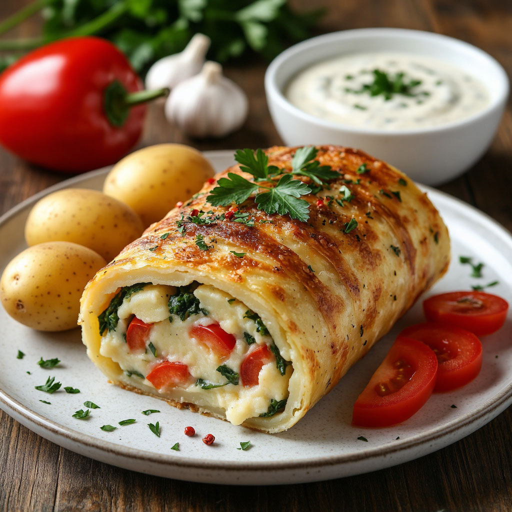 ✨ Хотите удивить своих близких вкусным и ароматным блюдом? Предлагаем вам рецепт картофельного рулета с яйцом и овощами — настоящий хит в нашей семье! Это блюдо поразит вас своим насыщенным вкусом и аппетитным видом. Готовьте с любовью и наслаждайтесь результатом! 🧡 🔔 Ингредиенты: