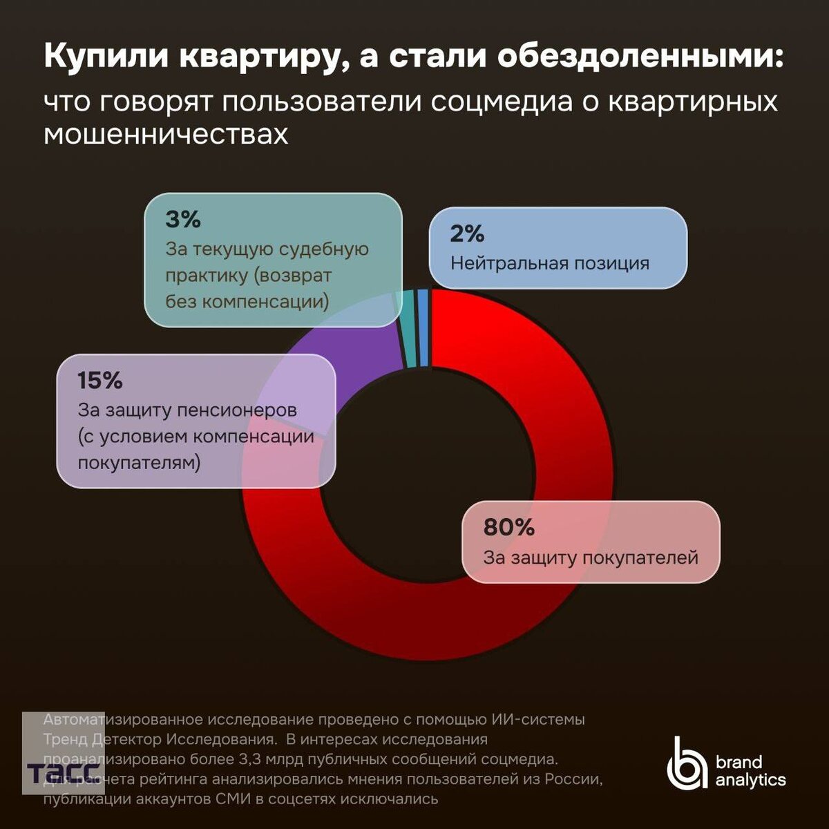«Стали обездоленными»: пользователи соцсетей, обсуждая квартирные мошенничества, выступают за защиту покупателей и считают несправедливым, что добросовестные люди теряют и жилье, и деньги, говорится в исследовании Brand Analitics, которое есть у ТАСС. Подписаться на Подмосковье сегодня