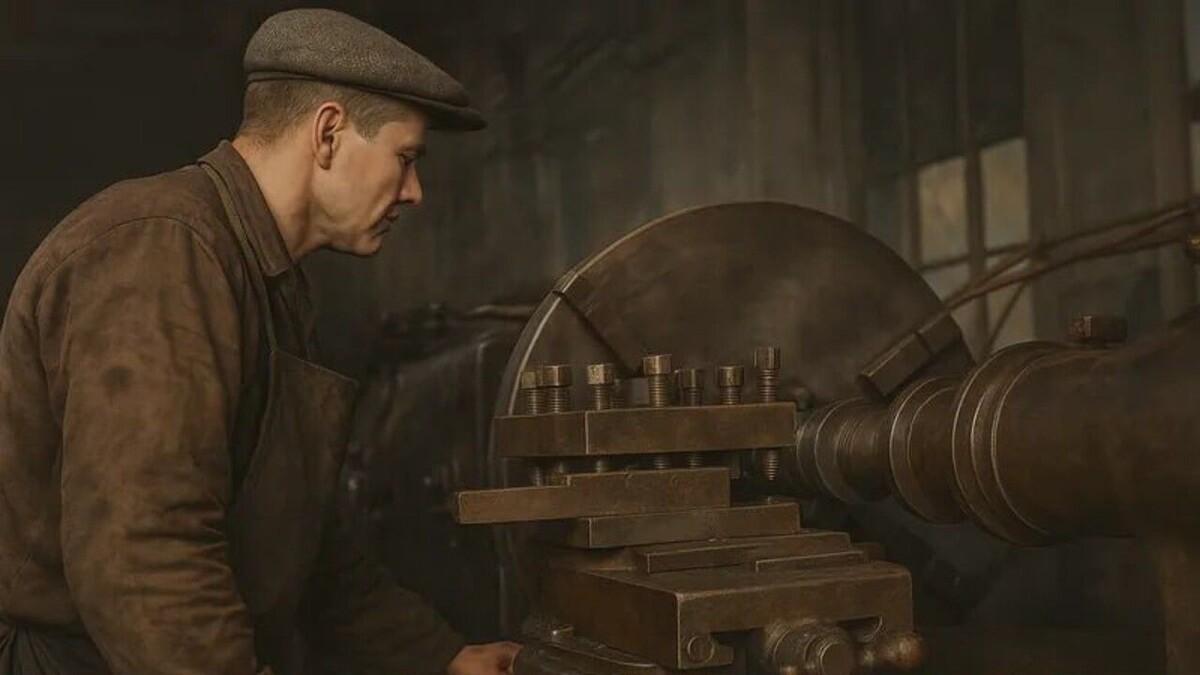 Токарь цеха тов. Нишпоренко завода № 2 Наркомпишепрома И. Бессараб, выполняющий нормы на 280–400 процентов