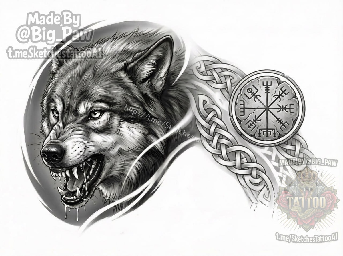 #2829 Подборка по запросу подписчика - можно эскиз? Оскаленная морда волка на плечо с задним фоном который идёт на грудь. Фон на ваше усмотрение 🧠 SYNTX - тут создан эскиз 💎 Информация - все услуги 💀 Эскизы от нейросети #волк #животные #наплечо #эскиз #тату #татуировка