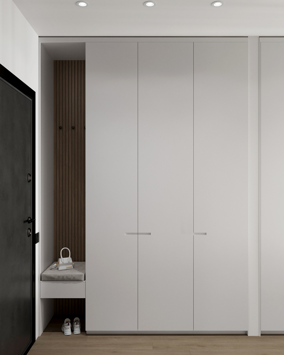 Несмотря на скромную площадь прихожей — всего 3 кв.м2 — в нашем проекте для ЖК «Аквилон» нам удалось создать функциональное пространство. Здесь мы разместили вместительный шкаф, в конструкцию которого интегрирована удобная ниша для сидения и практичные крючки для сушки верхней одежды. Напротив шкафа мы установили высокое зеркало от пола до потолка, которое визуально расширяет пространство. Завершает композицию компактная консоль, используемая для хранения ключей и головных уборов. Наши социальные сети: Пинтерест с проектами: https://ru.pinterest.com/gorbatova_interior/ Телеграмм: @karina_interior_design Группа ВКонтакте: