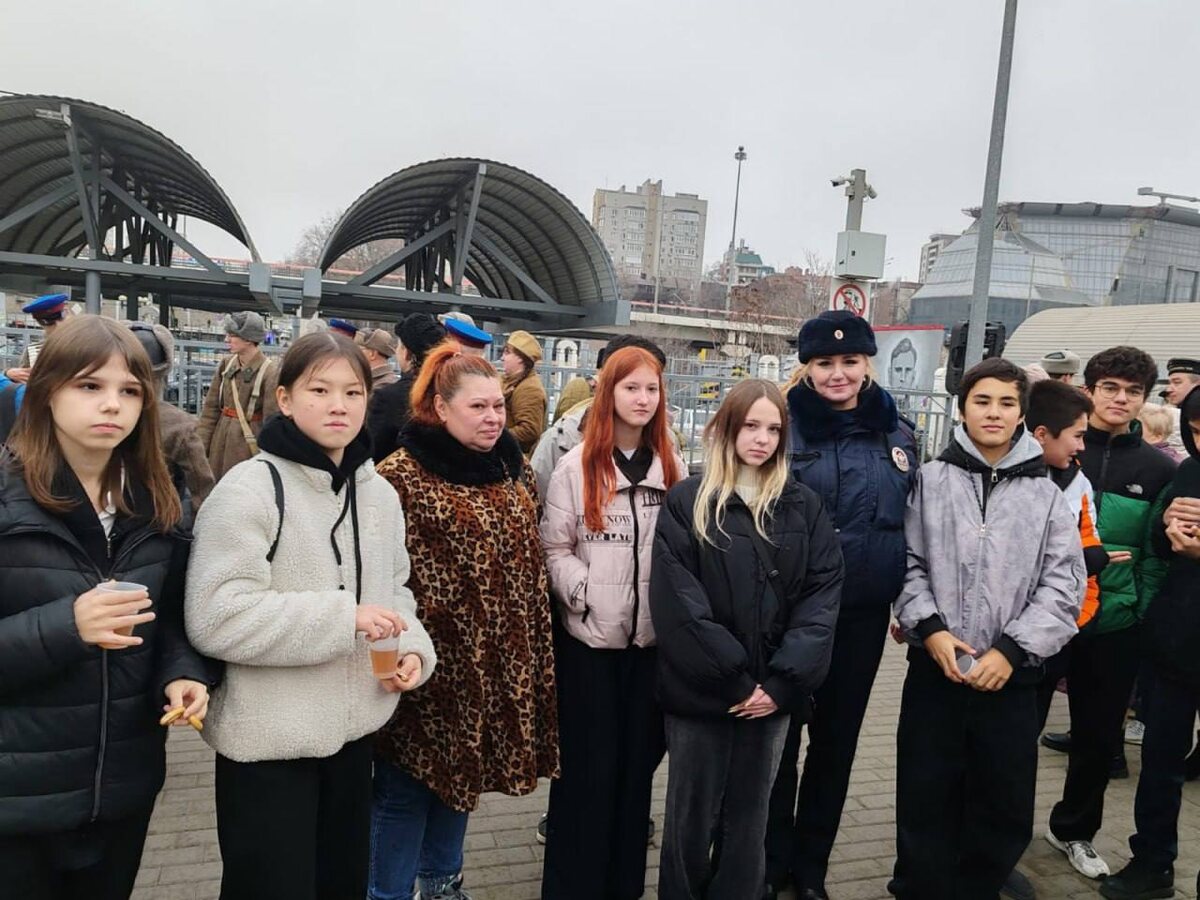 На Пригородном железнодорожном вокзале станции Ростов-Главный состоялись торжественные мероприятия, посвященные 84-й годовщине первого освобождения города от немецко-фашистских захватчиков в Великой Отечественной войне. 🎗 Мероприятие направлено на патриотическое воспитание молодежи и сохранение исторической памяти. Для гостей праздника работала масштабная тематическая экспозиция. 📜 На открытой площадке была представлена военная техника времен Великой Отечественной войны, а в специальном выставочном поезде воссозданы сцены из событий 1941 года и размещена уникальная коллекция военных экспонатов. Безопасность и общественный порядок в ходе мероприятия обеспечивали сотрудники подразделений Ростовского линейного управления МВД России на транспорте.🛡 Особенностью праздника стало активное привлечение подрастающего поколения. К мероприятию присоединились учащиеся детской железной дороги, школы №105 и лицея №14, всего более 60 ребят. Для всех участников силами организаторов была разверну