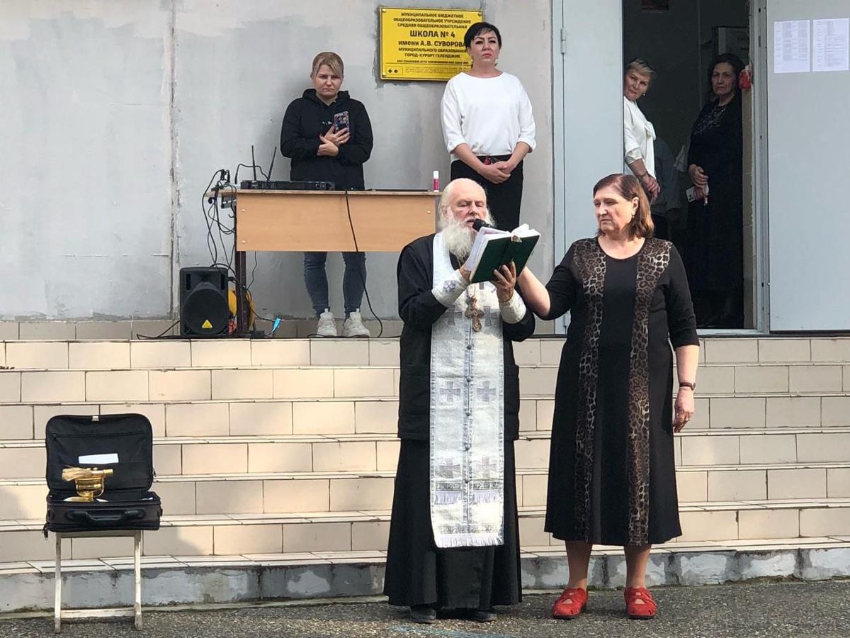 26 ноября 2025 года на базе МБОУ СОШ №4 им.А.В.Суворова проходил муниципальный этап XVIII Общероссийской олимпиады «Основы православной культуры». Перед тем, как сесть за парты, на площади школы собралось 265 участников из 15 школ МО город-курорт Геленджик, учащихся 4-11 классов. На линейке присутствовали: — директор школы Пугачева Елена Вячеславовна, — учителя школ, — организатор, координатор и ведущая мероприятия - начальник отдела организационно-методического сопровождения МКУ «Центр развития образования» Шендерова Лидия Николаевна, — представители ГНКОО «Геленджикское общество греков». — Духовник школы, почетный настоятель Свято-Преображенского храма г-к Геленджик протоиерей Виталий Ковалев Батюшка обратился к участникам с приветственным словом, в котором отметил значимость изучения православной культуры для формирования национального самосознания и сохранения исторических традиций России. Отец Виталий прочитал молитвы, благословил школьников и пожелал им успехов в пр