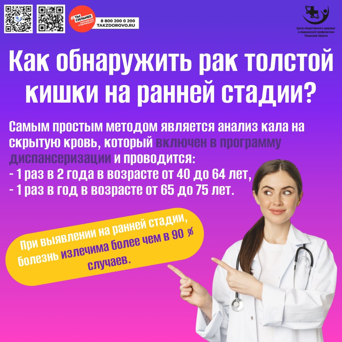 Идет неделя профилактики заболеваний ЖКТ! Как обнаружить рак толстой кишки на ранней стадии, когда он успешно лечится? 🎯 Ответ прост — анализ кала на скрытую кровь. Этот доступный метод входит в программу диспансеризации: ➔ 1 раз в 2 года — для возраста 40–64 лет ➔ 1 раз в год — для возраста 65–75 лет Позаботьтесь о себе, вовремя проходите обследование. Это может спасти вам жизнь! #неделяЗдоровьяЖКТ #профилактикаЖКТ #здоровоеПитание #заботаОсебе #здоровоебудущее #ЗдоровоеБудущее62 #ЗдороваяРязань
