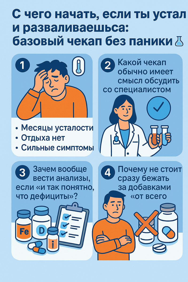 С чего начать, если ты устал и разваливаешься: базовый чекап без паники 🧪