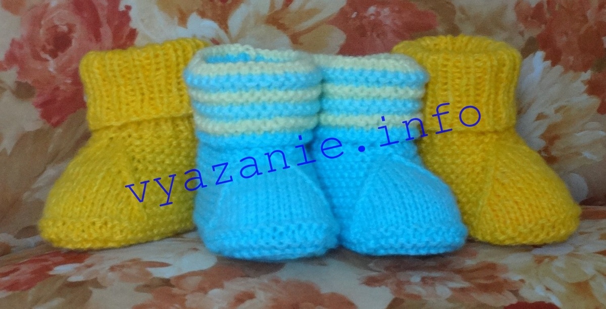 Чтобы пинетки не сползали, нужно вязать высокое голенище.