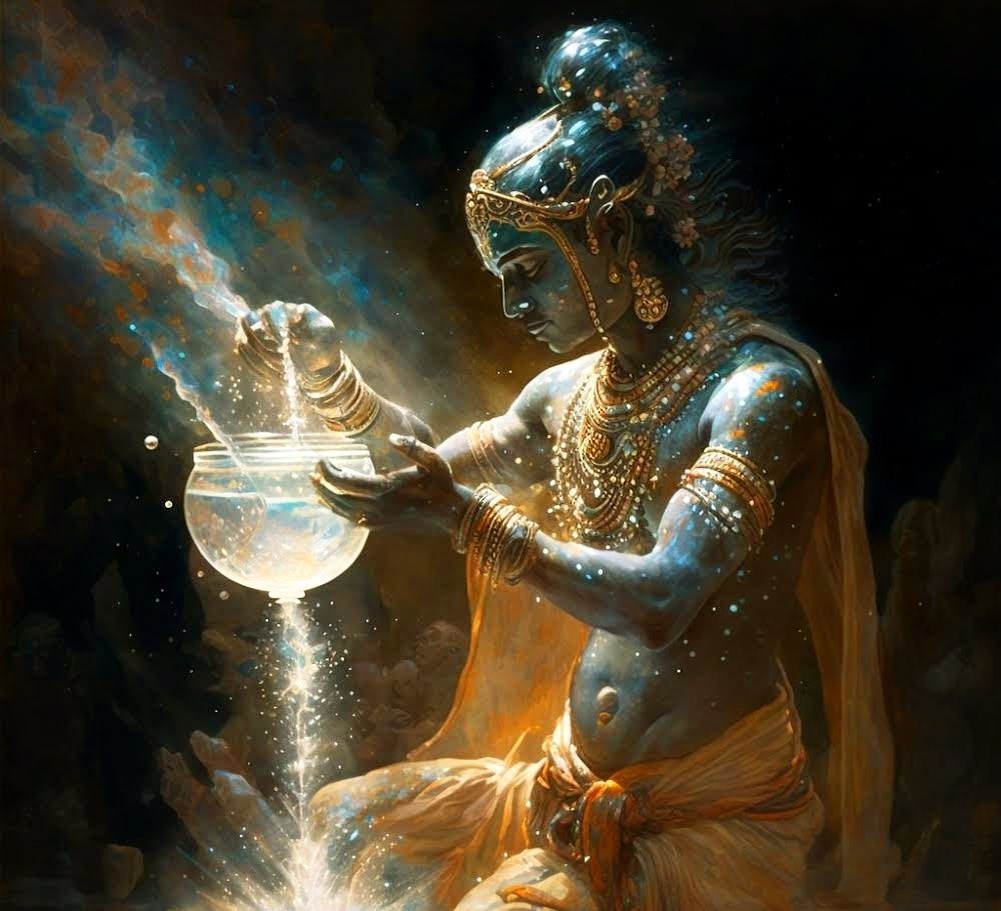Варуна - это бог воды, океанов, справедливости и космического порядка. Он связан с законом, моралью и ответственностью.
