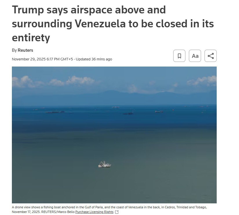 ⛔ Трамп закрыл небо над Венесуэлой