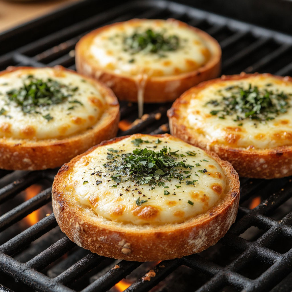 Хрустящие ломтики багета с сыром, чесноком и зеленью – идеальная закуска или дополнение к любому блюду!