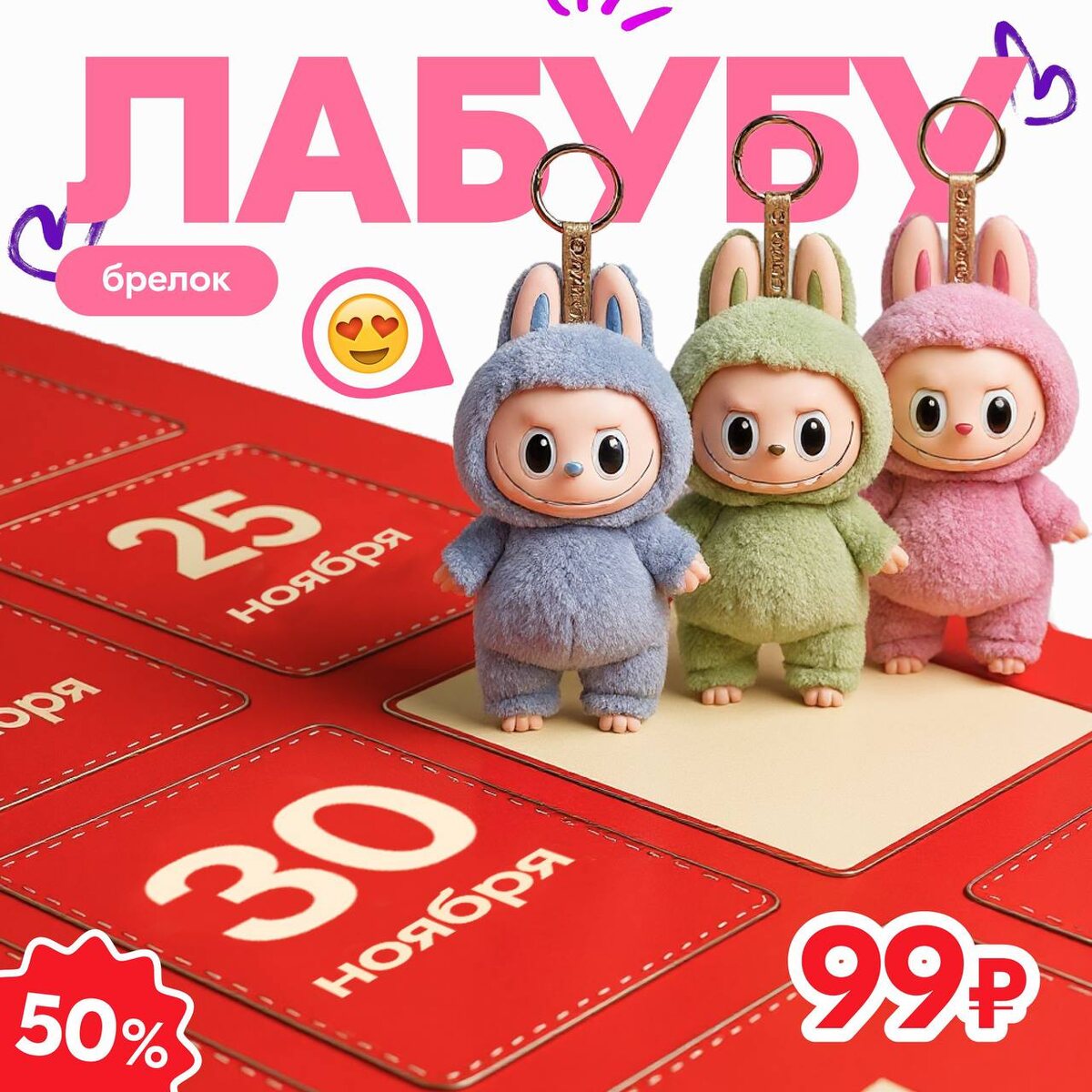 👀Кто успеет купить брелок-лабубу до конца ноября всего за 99 рублей? 😄