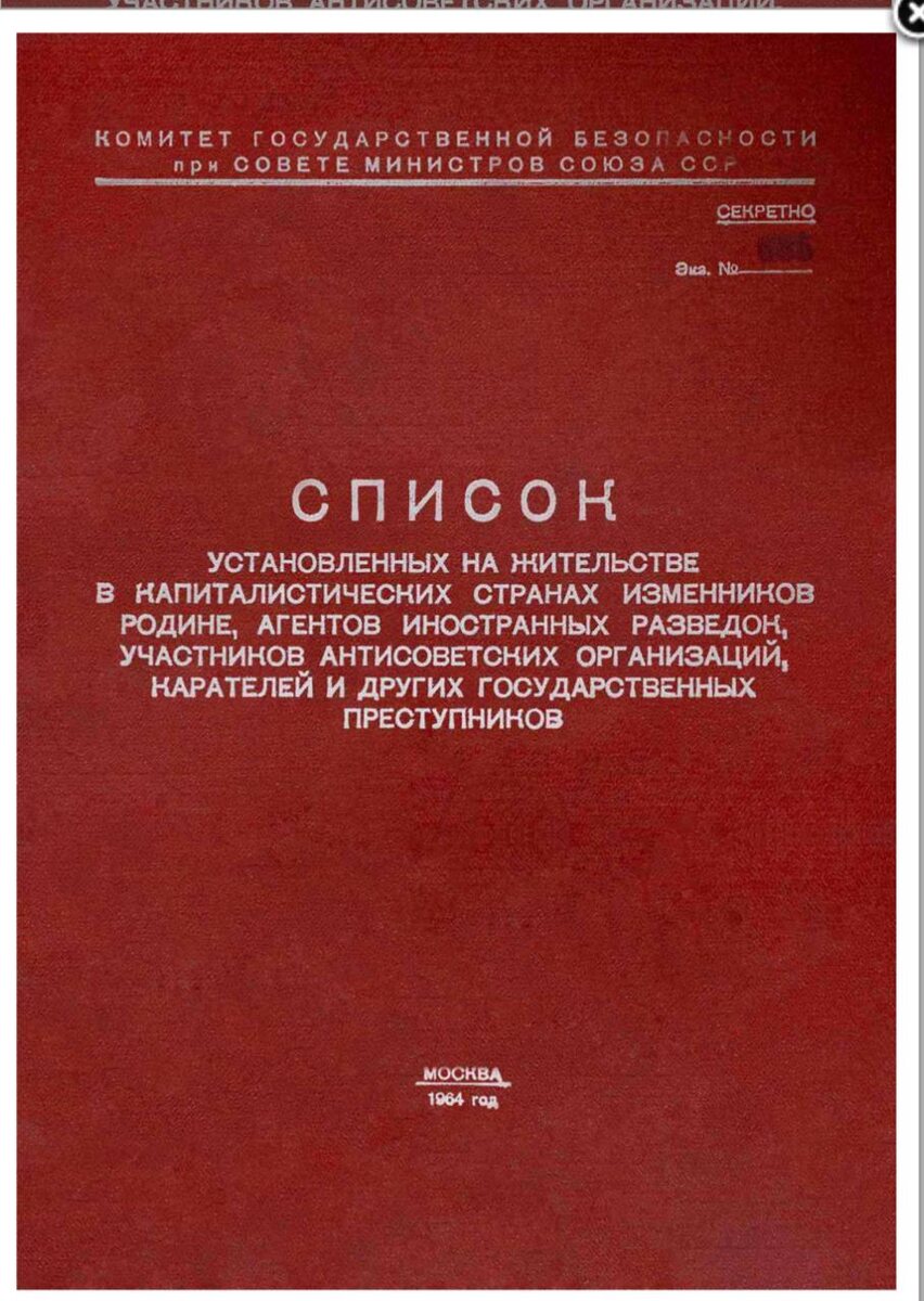 Список установленных на жительстве в капиталистических странах изменников Родине, агентов иностранных разведок, участников антисоветских