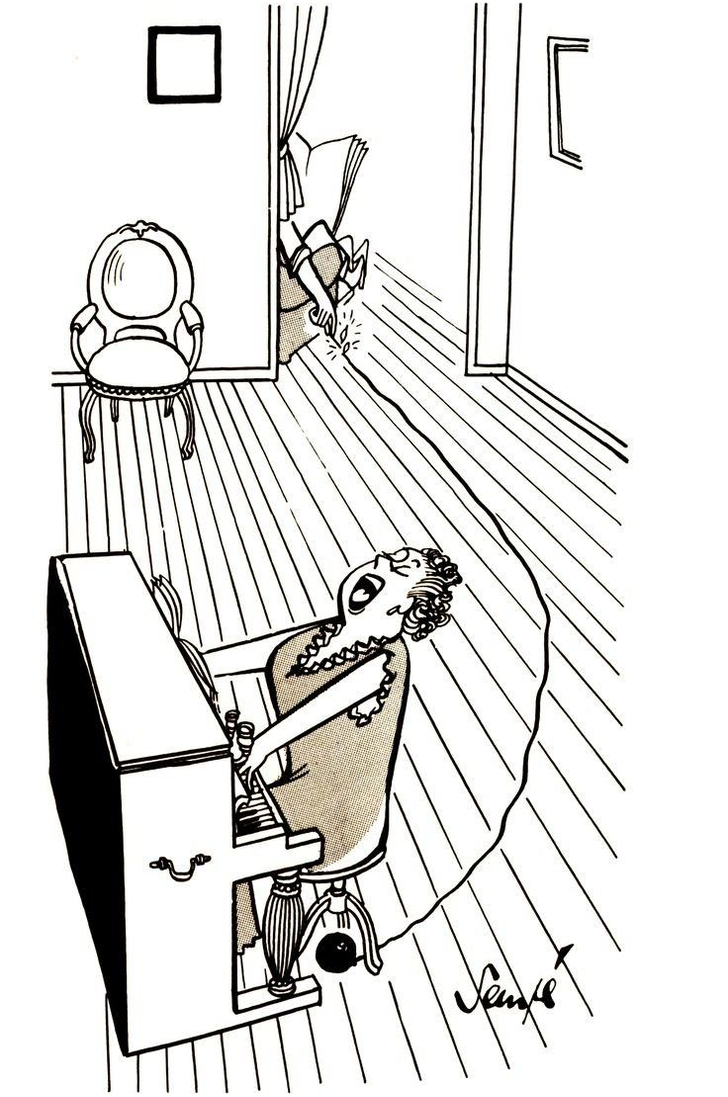 Знаете, в чем главное отличие Сампе от большинства карикатуристов? Он никогда не был злым. Сатира часто строится на желчи, на желании уколоть, высмеять порок. У Сампе нет пороков, есть слабости.