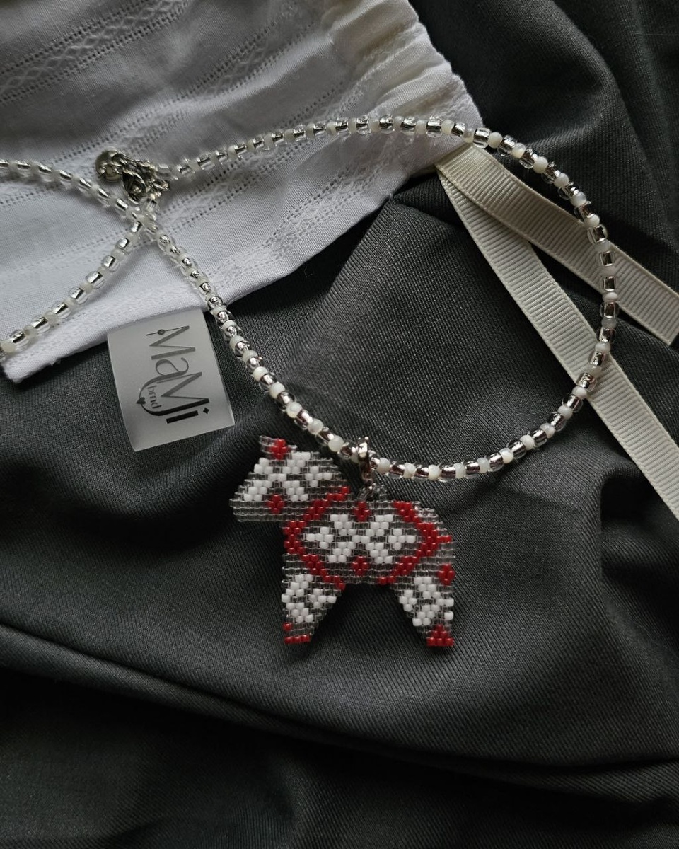 Хочу похвастаться новым украшением. Есть у меня такие авторы, чьи коллекции я жду как премьеру любимого фильма. И когда у Mami выходит что-то новое, я уже заранее на низком старте От чего такая любовь? Спросите вы. Потому что в их украшениях всегда есть отсылки к нашему русскому ремеслу: не банальные, а трепетные, глубокие, со смыслом Прошлой зимой всё началось с ожерелья с гжелью. Весной купила матрёшечку, которая собирала комплименты быстрее, чем мои наряды. А сейчас, вышла новая коллекция по мотивам мезенской росписи и я сразу влюбилась Это особенный русский промысел, где каждый знак, как маленькое заклинание. Красно-белые ромбы, солнечные символы, коняшки: вы наверняка видели эти орнаменты на прялках, сундуках и оберегах. Конь в мезенской росписи, главный персонаж. Олицетворяет восходящее солнце, силу, движение, энергию всего живого. Символ, который особенно актуален в наступающем 2026 году В коллекции три украшения, но моей душе откликнулся именно конёк из бисера. Белоснежный