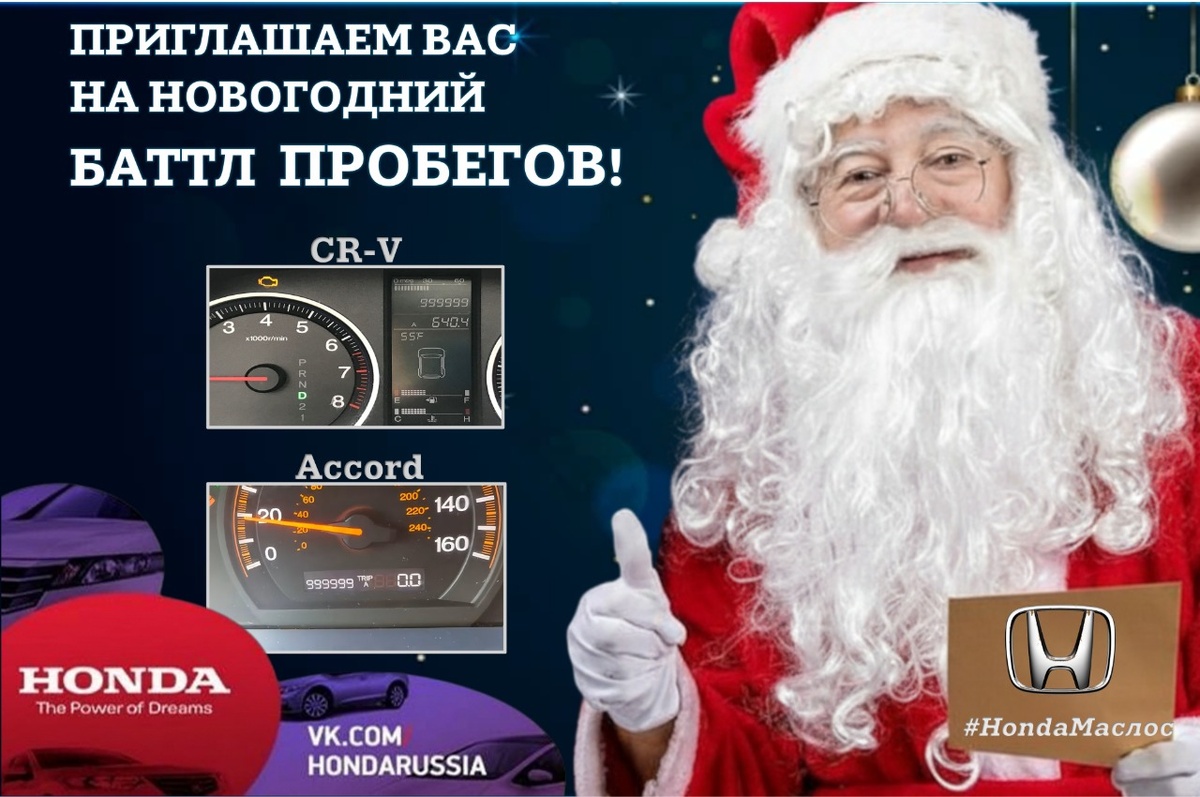 - До 10 декабря 2025 включительно кидаем в комментарии к посту в группе HondaRussia во Вконтакте фото приборки, а также пишем цифру пробега, модель машины, год выпуска и ваш город в РФ (пример: 999999, CR-V, 2010, Москва) Самые заслуженные Honda ждет тот самый новогодний сюрприз! Не скромничайте, хвастайтесь! Участвуют все модели автомобилей Honda, поставленные на учет в России. Лайки, репосты - приветствуются. #HondaМаслос