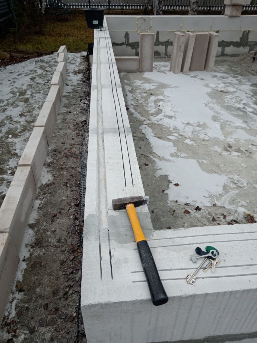 Молотком выбиваю и вычещаю штробы - в них уложу арматуру и залью плиточный клеем