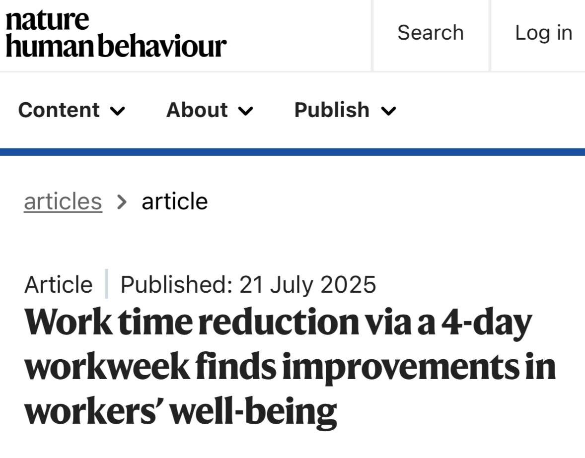 Оказывается, стандартная пятидневка — далеко не самый эффективный режим для нашего мозга. Нейробиология и масштабные эксперименты предлагают два революционных решения. Решение №1: Выходной в середине недели Нейробиологи предлагают работать в понедельник и вторник, отдыхать в среду, а затем снова погружаться в задачи в четверг и пятницу. Этот подход разбивает монотонность и дает мозгу своевременную перезагрузку. Решение №2: Четырехдневная неделя подряд Еще более радикальный и протестированный по всему миру вариант — четырехдневная неделя подряд с сохранением полной зарплаты. В рамках глобального эксперимента 4 Day Week Global 141 компания из Австралии, Канады, Ирландии и других стран на 6 месяцев перешла на новый график. Результаты, опубликованные в журнале Nature Human Behavior, впечатляют: Анализ данных почти 3000 сотрудников показал значительное улучшение их благополучия: снижение уровня выгорания, рост удовлетворенности работой, улучшение психического и физического здоровья, сниж