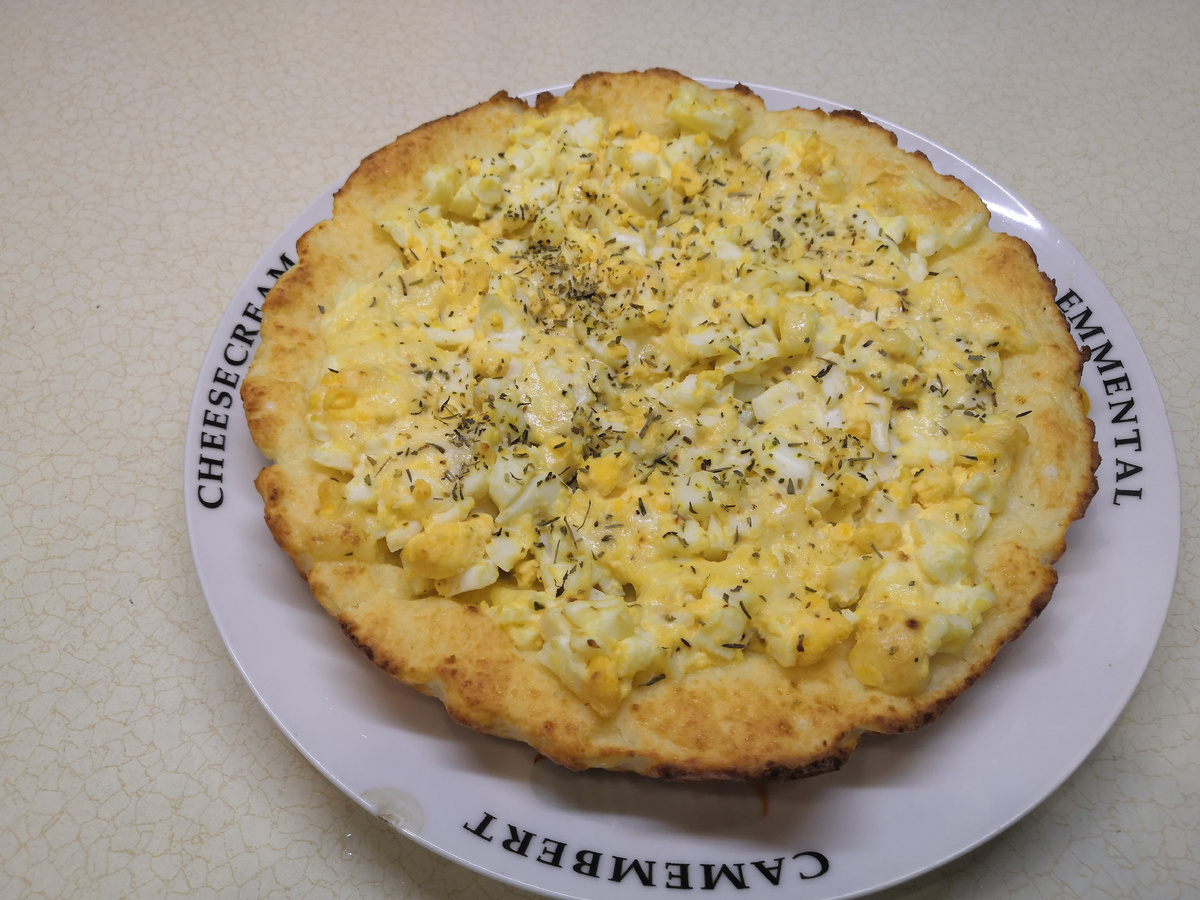 КБЖУ на 100 гр: 161/14/8.5/8 Для основы: Для начинки: 1. Сначала приготовила основу. Смешала творог, яйцо, разрыхлитель, соль, муку и замесила тесто. 2. В форму положить бумагу для выпечки, я использую силиконизированную. Сверху прямо на бумаге равномерно распределить тесто, сделать небольшие бортики. Запекать при 180 гр 15 минут 3. Яйца нарезать, сыр натереть. Смешать яйца, сыр, йогурт, чуть соли. Добавить специи и зелень по желанию. 4. Достать основу, выложить начинку и запекать 10-15 мин при 180 гр. Подавать в теплом виде