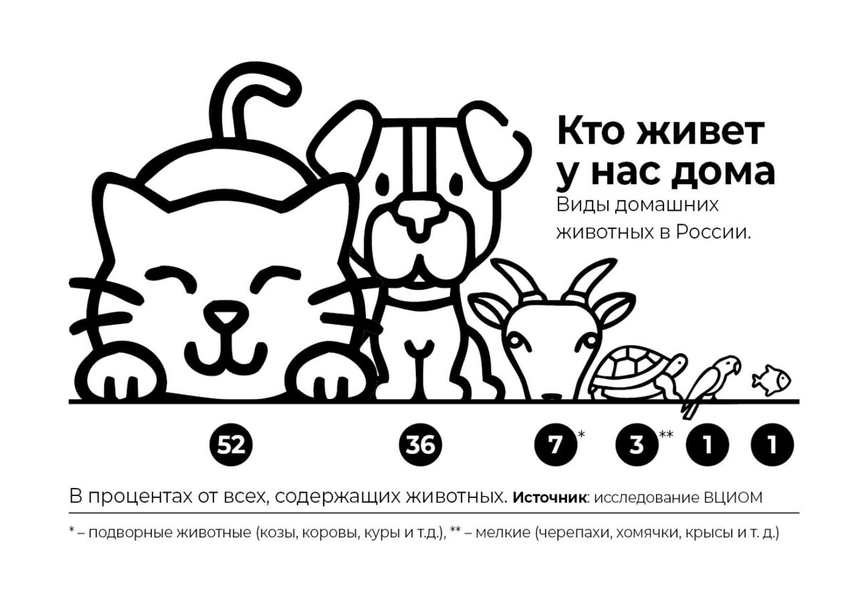 По статистике ВЦИОМ, больше всего в домах россиян живёт кошек – 52%. А кто живёт у вас?