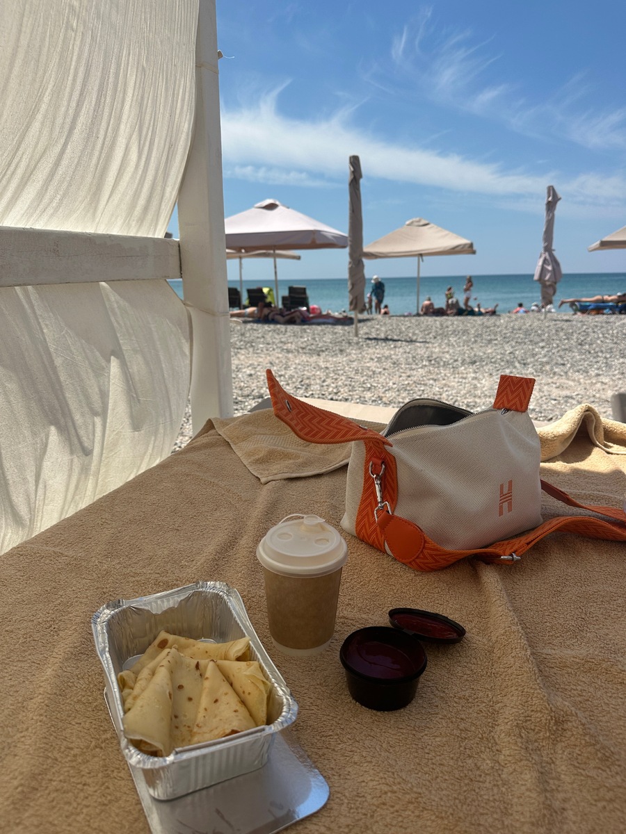 Мы живём в Крыму, поэтому у нас каждые выходные выдаются очень насыщенными. До этого мы ни разу не бывали в Евпатории, но много слышали о красивых песчаных пляжах и прозрачном море. И вот в однажды мы твёрдо решили — едем! В этой статье расскажу о наших первых выходных в Евпатории. Мы всегда путешествуем с нашим щенком, поэтому отдых приходится планировать тщательнее. Но с помощью сервиса Яндекс Путешествия мы можем найти подходящий вариант размещения гораздо быстрее. Такси до Евпатории обошлось нам в 3,5 тыс. рублей с учётом доплаты за собаку. Да, недешевое удовольствие, особенно туда и обратно. Но что поделать. Мы остановились в отеле «Бургас», разложили вещи и как можно скорее отправились на пляж. На улице было +30 градусов, если не больше. Тогда я думала — как же выжить в этой жаре? А сейчас с теплотой и грустью вспоминаю эту поездку. Дорога до пляжа «Золотые пески» заняла около 15 минут. Это один из лучших пляжей в Евпатории, он оборудован всем необходимым для отдыха. Мы арендова