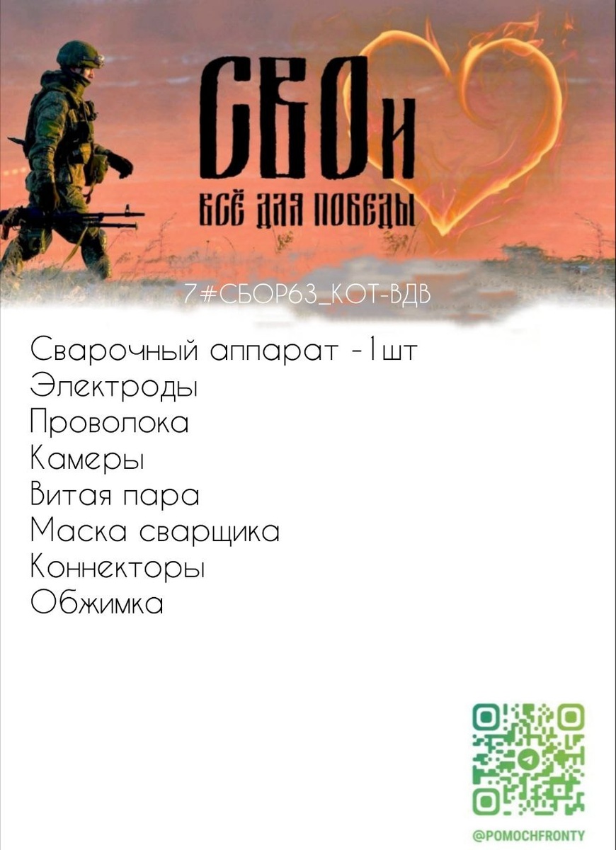 7️⃣ой Декабрьский сбор 🚨 😊🙃🥰 🎯 Сбор для Кота-ВДВ. Запорожское направление. Разведка Наш Кот с ВДВ работает на запорожской земле — ремонтирует технику в полевых условиях и следит за передвижениями врага. Чтобы его работа была еще эффективнее, нужно специальное оборудование. Нужно для дела: •Сварочный аппарат и комплект для сварочных работ — для оперативного ремонта техники в полевых условиях •Видеокамеры наблюдения — чтобы видеть всё, что происходит вокруг Это не просто инструменты — это возможность быстро чинить машины и заранее знать о передвижениях противника! В этом посте есть большое видео, которое не загрузилось в Дзен. Откройте оригинал поста в телеграме, чтобы его посмотреть