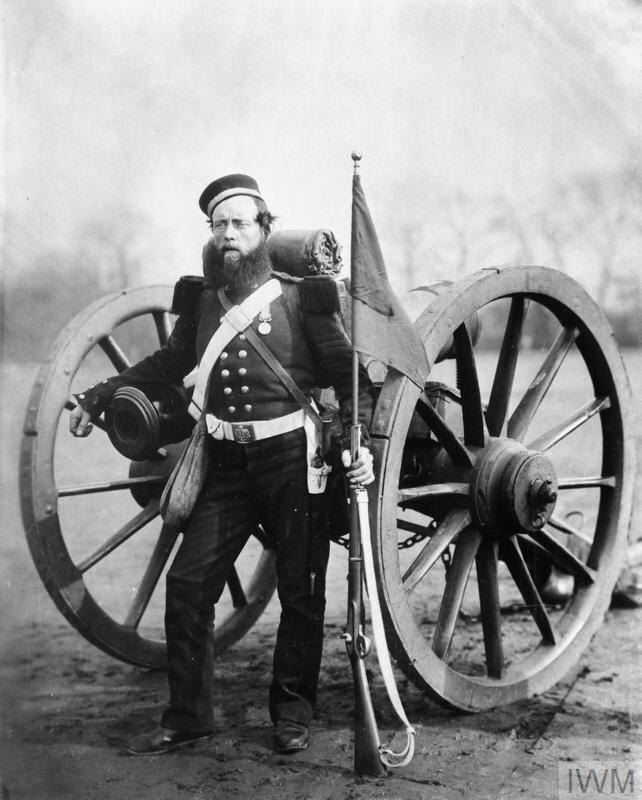 Первый из этих снимков имеет в музее следующую подпись: «Сержант Уильям Рюпел, 5-й батальон, Королевская артиллерия, с российским орудием (возможно, одним из захваченных в Севастополе) и штандартом в Королевском арсенале, Вулвич»