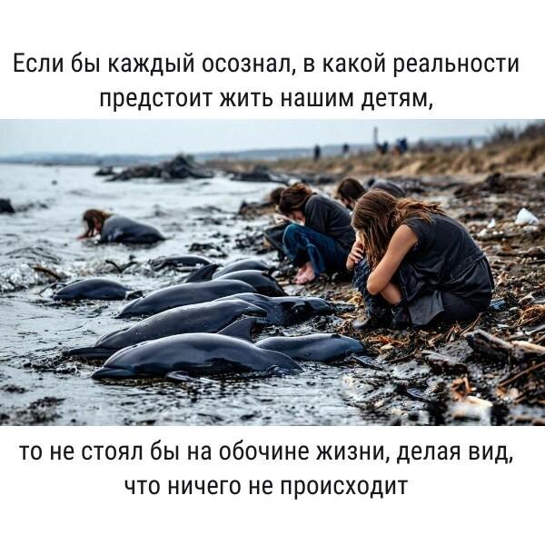 Наступит день и все родители поймут, что мы в ответе за мир, куда приходят наши дети. Мы уже не видим, что транспорт отобрал лучшие места в городах у людей. А что транспорт уносит миллионы жизней в год - мы даже не хотим слышать. Пробки, шумовой загрязнение и транспортная усталость стало обыденностью - как итог сплошная депрессия. Под твердым асфальтовым покрытием площади шести Великобританий - это на сотни метров вокруг погубленная экология и животные. Но мы жаждем еще больше дорог еще больше машин. Мы хлопаем в ладоши очередному запуску Илона Маска в космос - но не хотим знать, что каждый запуск - это дыра в озоном слое величиной с Францию. Мы так привыкли к привычному - например ежедневная еда - а это 80 млрд жизней. 90% пахотных земель уходит на прокорм сх животных - это вырубленные леса, тонны химии и деградация земель. Но кого волнует 80 млрд жизней и погубленная земля - ведь мы привыкли, что «мясо есть надо» Как итог мы наблюдаем войну он-лайн((( Мы сбежали из реального мир