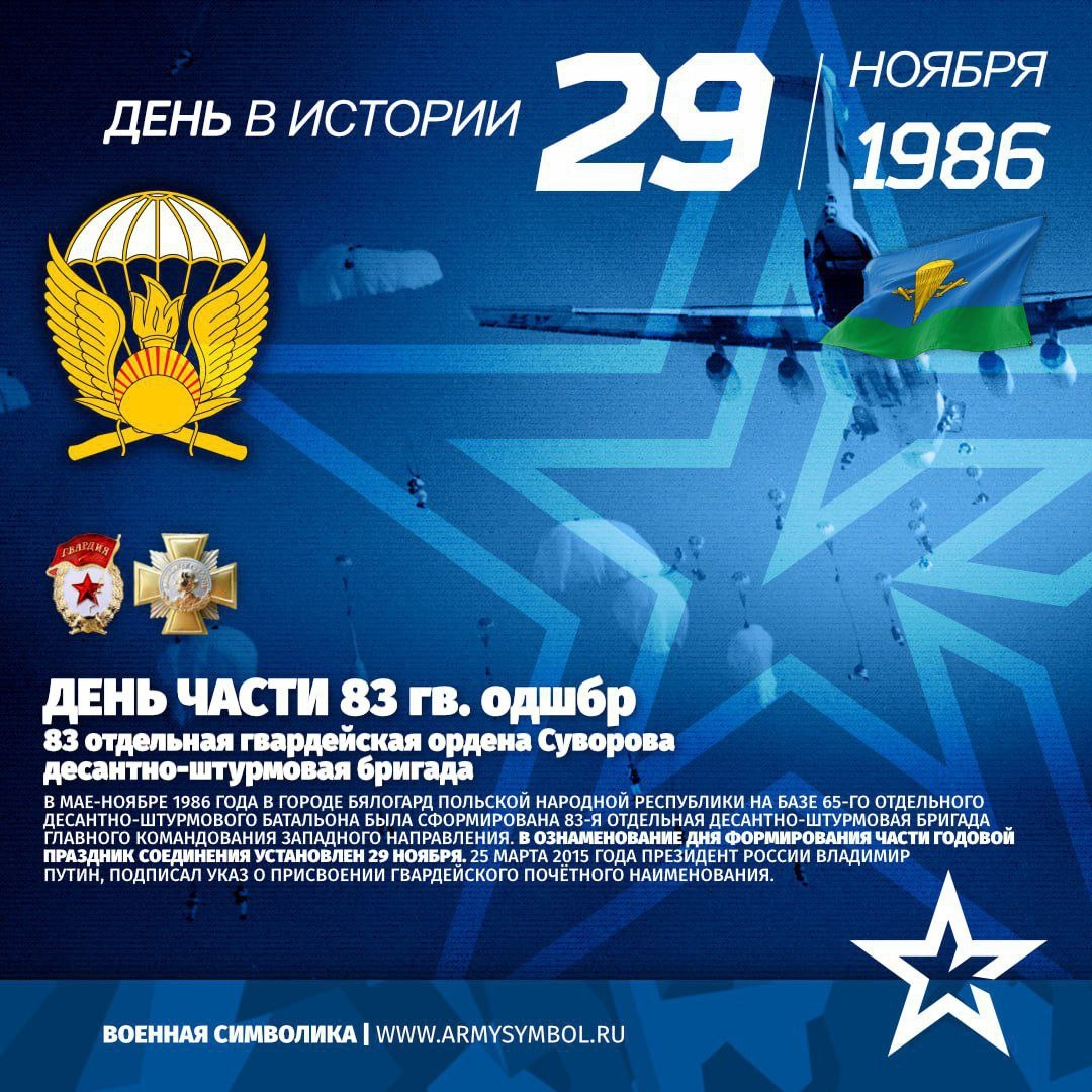 🪂 Сегодня, 29 ноября - День образования 83 отдельной гвардейской десантно - штурмовой бригады