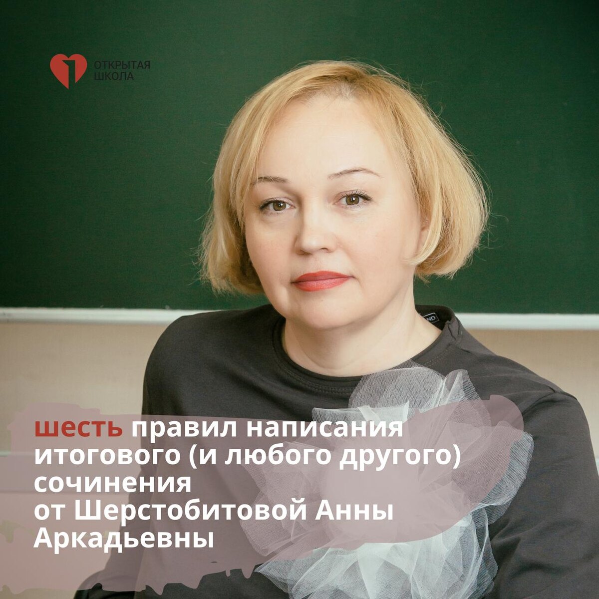 Сочинение без стресса: 6 советов от директора Открытой школы для 11-классников. Итоговое сочинение — ключ к ЕГЭ. Шерстобитова Анна Аркадьевна — директор Открытой школы, дипломированный учитель русского языка и литературы, репетитор с многолетним опытом и в прошлом главный редактор нескольких журналов. #СоветыОтДиректора