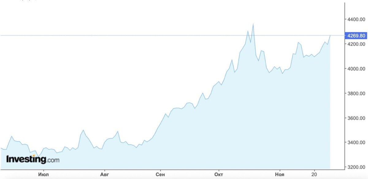 По консенсус-прогнозу Goldman Sachs к концу 2026 года золото достигнет нового исторического максимума в $5000 Более 70% институциональных инвесторов прогнозируют рост цен на золото в следующем году. В ходе опроса более 900 клиентов-инвесторов 36% респондентов (самая большая группа) ожидают, что золото сохранит свою динамику и превысит $5000 за тройскую унцию к концу следующего года. Еще 33% ожидают, что цена на золото будет варьироваться в диапазоне $4500 до $5000.